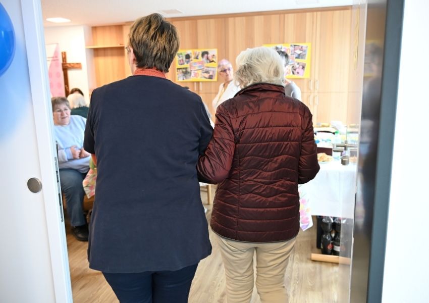 Frau Schaupp entschied sich, ihn mitzunehmen. Als sie den Hocker der älteren Dame brachte, war die Freude groß. Eine kleine Geste, die spürbar Erleichterung brachte.